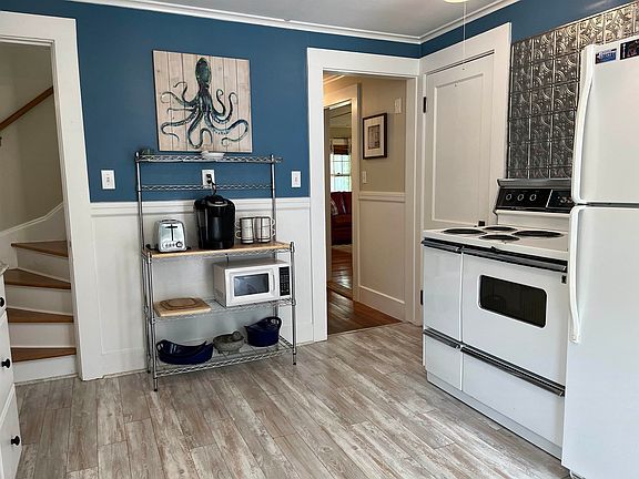 Inviting, charming 1930's era Cape has been lovingly updated and offers 3 BRs and 1 full bath. Original, refinished hardwood floors and high-end vinyl plank flooring complement the fresh paint throughout. First floor bedroom, bath and laundry, with two additional bedrooms upstairs. Cozy enclosed porch/sunroom is perfect for your morning coffee or curling up with a good book. Warm weather calls you out to the large deck overlooking the private backyard. Full, unfinished basement for storage. The one car detached garage also boasts a good-sized workshop or potting space. Mature flowering plants surround the house. Close to all that downtown Wolfeboro has to offer, just minutes to the public boat launch on Lk. Winnipesaukee, town beaches and more. Move right in and enjoy the beautiful Fall season!