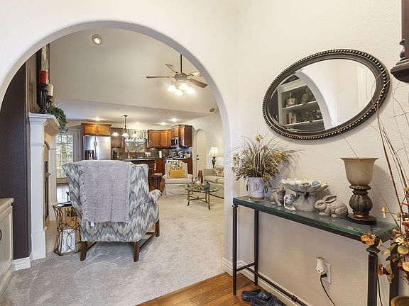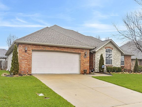 Beautiful open concept home in Nixa! This 3 bed, 2 bath home offers tall ceilings, arched doorways, a paver patio, a split bedroom plan, and excellent landscaping. The living room features a gas fireplace surrounded by built-ins and complimented by a cathedral ceiling. The kitchen has a center island with barstool seating, tile backsplash, stainless appliances, attached dining space, and hardwood floors! Primary bedroom boats tray ceilings, a sitting area or office space, a relaxing attached bathroom with dual sink vanity, built-in linen storage, a walk-in shower, jetted tub, and large walk-in closet. There are two more bedrooms that share a full hall bathroom. Outside, enjoy a paver patio, professional landscaping, privacy wood fence, and irrigation system. Quick access to Nixa Community Center and Hwy 160.