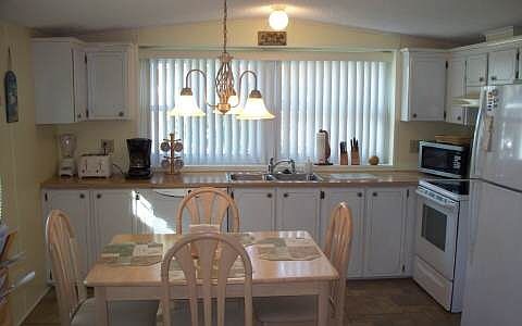 Great for year round or seasonal living. Immaculate home, move-in ready. This light and bright home has an open floorplan with an eat-in kitchen that has many cabinets and light appliances. Laminate flooring. Lovely veranda room with new sliding glass windows to enjoy the sunny breezy days. Separate workshop can be used for extra storage space. New double hung windows throughout home. This home is being sold furnished (Living room TV, kitchen table+chairs and hallway dresser are excluded).
