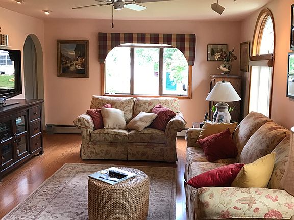 Beautiful, renovated and expanded Cape on tree-lined street in great neighborhood! Large LR w/ gorgeous windows and hardwood floors open to large bedroom with frosted privacy doors; dual entry bathrm (BR/hall); and opens to Sunroom; DR with bow window opens to modern eat-in kitchen with center island with breakfast bar; sliding glass door to deck. Dormered second floor with two large bedrooms and TB/SOT. Recreation Room, laundry and workshop in lower level. Close to elementary school; bus to middle school; close to county park and NY bus transportation. This is a must see home!