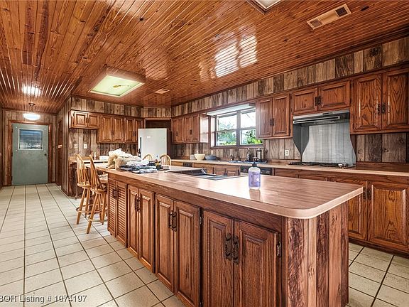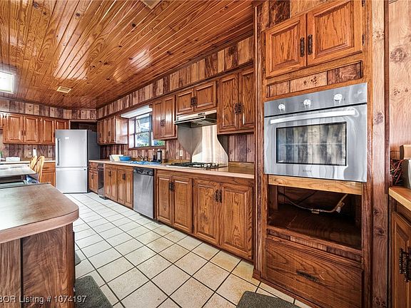 Step inside to find a cozy interior featuring warm wood car siding ceilings and a welcoming wood-burning fireplace, perfect for creating a comfortable, inviting atmosphere. The expansive kitchen is a chef’s dream with a new convection single oven and a drop-in gas cooktop, providing ample space for cooking and entertaining.