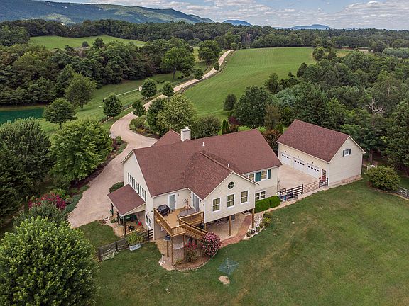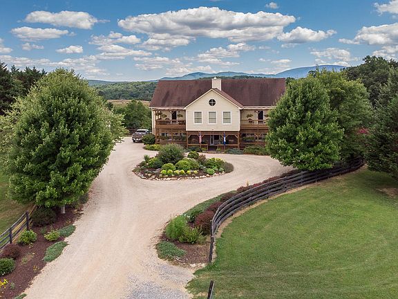 Inveraray Farm offers a pastoral setting with long range mountain views less than 15 minutes from downtown Lexington. Situated on a quiet country road, the home features over 4,800 SF of living space in a highly functional and open floor plan with gourmet kitchen, 5 bedrooms, 4.5 baths, exercise room, home office, and steam room. The property boasts 55+ acres of pasture and forest with large pond, mature landscaping, fruit orchard, and garden. Additional improvements include a three car garage with guest quarters and barn with hay loft, horse stalls, and tack room. Fiber internet installed!