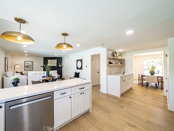Welcome to this beautifully remodeled home located in a highly desirable near Alta Vista Country Club Golf Course in Placentia. With 5 bedrooms and 3 bathrooms, this spacious residence offers a perfect blend of comfort and style. Step inside to this smart house and be greeted by a remodeled kitchen that will surely impress. Featuring custom floating shelves, a tiled backsplash, and quartz countertops with a waterfall edge, this kitchen is a chef's dream. The new faucets, new cabinets with self-closing drawers, and a full pantry provide both functionality and elegance. Custom pendant lights over the island add a touch of sophistication. The kitchen seamlessly opens up to the family room, complete with a cozy fireplace and large sliding glass doors that offer a picturesque view of the beautifully remodeled backyard with its inviting pool. Entertain guests in the formal dining room, which boasts a custom wood accent wall, creating a warm and inviting atmosphere. The living room features a custom tiled fireplace, adding a focal point to the space. One of the five bedrooms is conveniently located on the main floor, making it ideal for guests. It is adjacent to a bathroom and offers easy access to the pool area. Throughout the home, you'll find recessed lighting, new engineered hardwood flooring, and a new custom staircase handrail, adding to the modern ambiance. The master bathroom features dual vanity sinks and has been tastefully remodeled. Both upstairs bathrooms have been upgraded with custom wood dual vanity sinks, new vanity mirrors, and light fixtures. The bathrooms also showcase new tile showers from Bedrosians, new glass doors, new drawer handles from Restoration Hardware, new Delta faucets, and new tile flooring. New closet doors, electrical outlets, and switches are found throughout the home, providing a fresh and updated feel. Practical additions include a new GE full washer and dryer, new epoxy coated garage floor, and new roof (permitted). The central AC and heat ensure year-round comfort. The front and back yards have been professionally landscaped, featuring new sprinklers on a timer. The self-closing wood fence gates add security and convenience. In summary, this remodeled home offers an array of desirable features and upgrades, including a stunning kitchen, luxurious bathrooms, new windows, fresh paint inside and out, and new concrete in the front and back. Don't miss the opportunity to make this your dream home in a fantastic neighborhood.