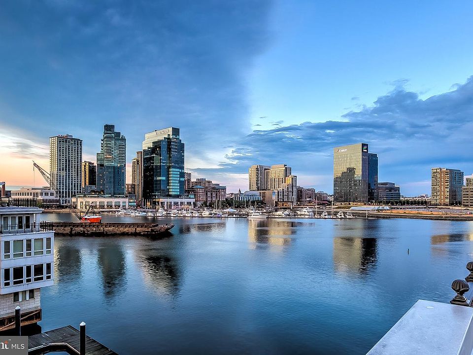 Luxury living in a Harborview Pier Home! Towering directly over the Baltimore harbor waterway, the Pier Homes offer an unparalleled waterfront experience. This sought-after floorplan is situated for spectacular views of the city skyline and iconic Domino Sugar sign. Inside, this meticulously finished home feels magazine-ready with its nuanced charm and tasteful detail and appointments. Brazilian hardwoods throughout, this home offers a sun-filled warmth with light pouring from its winding stairway. A gourmet kitchen watches over an open living/ dining area and its wall of windows framing the spectacular view of downtown~s silhouetted architecture emerging from the glassy bay.Upstairs, the master suite complete with sitting area, generous walk-in closet and grand master bath, all of which surround a regal bedroom that enjoys a windowed bump-out with stunning sightlines.The fourth floor finds a comfortable den off of two more bedrooms and a shared bath. A fourth bedroom with private bath is tucked off of the main foyer just beyond the attached two car garage. Atop this masterpiece, a roof terrace with wet bar and views forever. Neighborhood amenities included outdoor pool access, exercise room, additional guest parking, attended gate entry and more.