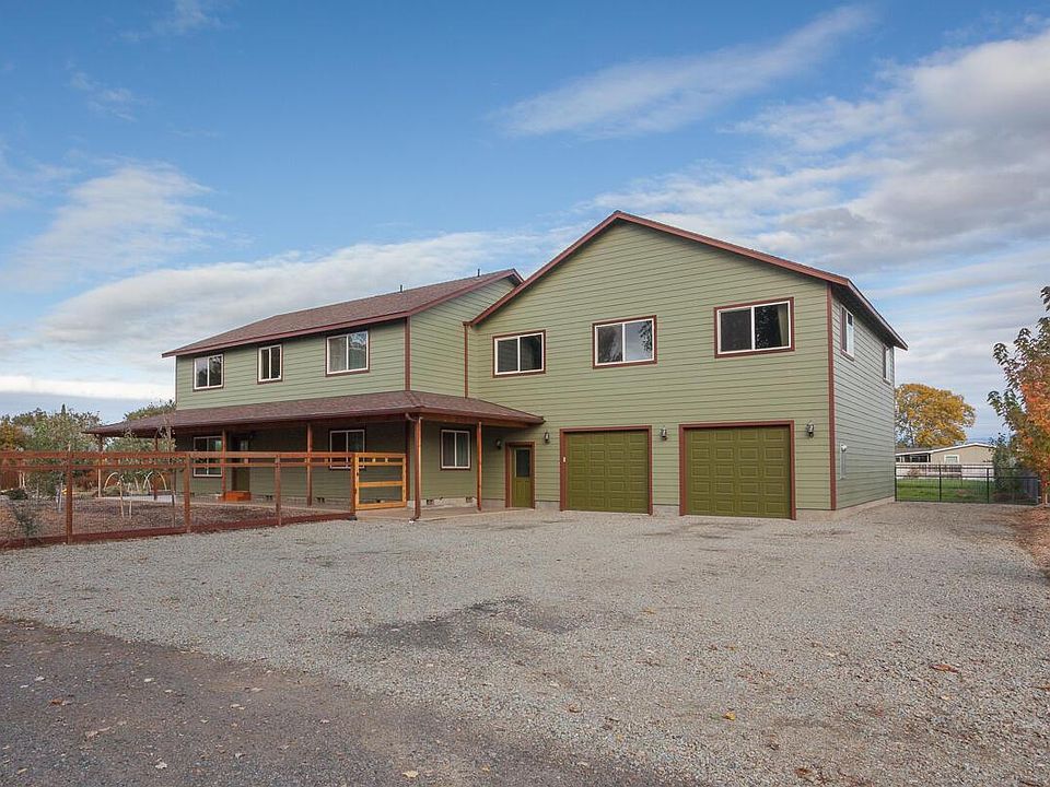 Welcome to this beautiful country home that boasts 2600 sq ft. of living space with 2 full baths and 2 half baths. This 2 story home sits on one full acre parcel with a high-producing well to keep everything green. Inside you’ll find a very spacious home with flowing hardwood maple floors in the dining, family, and living rooms. There are several windows that allow plenty of natural light in. The kitchen is very large with great lighting and an abundance of cabinets and counter space. There are also stainless steel appliances as well as a breakfast bar. The stone tile in the kitchen and bathrooms is a wonderful upgrade. The living room has a vaulted ceiling and a spacious loft looking down into it. Bedrooms are good sized and the master bedroom has a walk in closet and double vanities in the bathroom. There is a wonderful attached garage/shop complete with 10ft ceilings , three garage doors , two side doors, a 23 ft workbench and plenty of outlets. The garage is 40 x 36; 1440sq ft. Above the garage is an unfinished bonus room that is 1440 sq ft with 12 ft vaulted ceilings and looking out to Mt Mclaughlin; this is in addition to the sq ft of the home. There is a 400 amp meter base with 2 – 200 amp breaker panels to serve the house, garage/shop, and an ultimately finished bonus room with plenty of power. Outside you will find a vaulted porch that wraps around the house expanding out to 12 ft in back for entertaining and enjoyable views of the hillsides. The house is well situated to allow 15 existing mature fruit and nut-bearing trees, seasonal berries, and plenty of raised garden beds. There is ample pasture to raise chickens, turkeys, and sheep if you like. All of the garden and pasture are set up for irrigation with plenty of water. There is also a large southern exposure on the garage rooftop to eventually install solar panels for a self-sufficient lifestyle. A home of this quality that offers everything rarely comes on the market, Schedule your showing today
