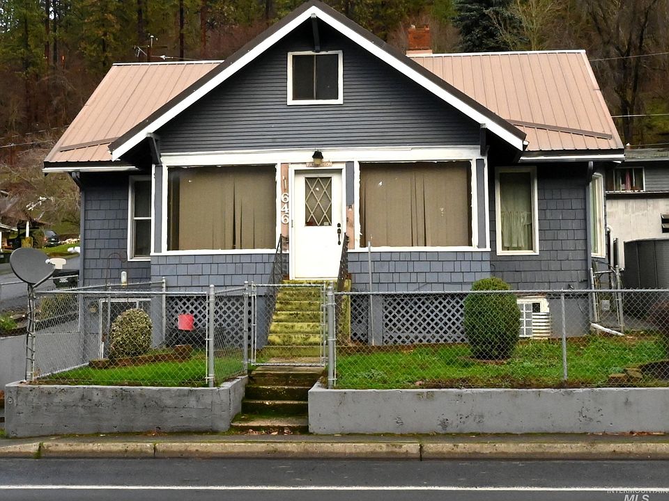 This house is located in the beautiful rural town of Orofino and is near schools, shopping, and the river. Potential for income as there is an attached guest house with an additional bedroom, 3/4 bath, and kitchen area that is currently used as a rental, could also be used as a guest house or in-law suite. The attic has an open area that has been sheet rocked, accessible by drop-down stairs in enclosed front porch. There is a large carport and an additional paved parking space on the lower level, so parking is not a concern. Effective year built is 1961.