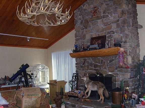 This property is a unique back country get-away. It would make a wonderful hunting camp for a club or extended family with its 6 bedrooms and 2 bathrooms. Through the hallway and up half a flight of stairs is a huge great room with a floor to ceiling stone fireplace, vaulted ceiling, hardwood floors, and antler chandelier. In one corner is a modern kitchen and opposite it is a sizable dining area. The great room opens onto a large back deck, while the hallway opens onto a large front deck. This can be purchased with 112.66 acres behind it (MLS# 129904 ). Sold "as is, where is." If sold separately, right-of-way across road front property to acres behind will be included.