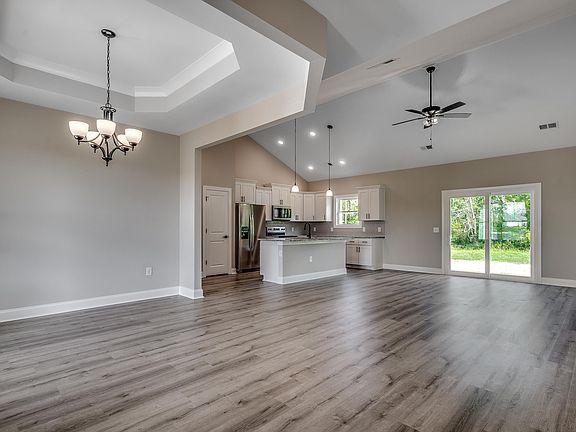 Don't miss this incredible new construction 3-bedroom, 2-bath home in the highly sought-after Keighley Estates! Featuring an open floor plan, vaulted ceilings in kitchen and living area, tray ceilings in the dining room and primary suite, a split-bedroom layout, and a spacious primary suite with walk-in closet, double sinks, shower and soaking tub. The kitchen and bathrooms are finished with white cabinets, sleek granite countertops, luxury vinyl plank flooring, plus updated lighting throughout. Don't Delay!