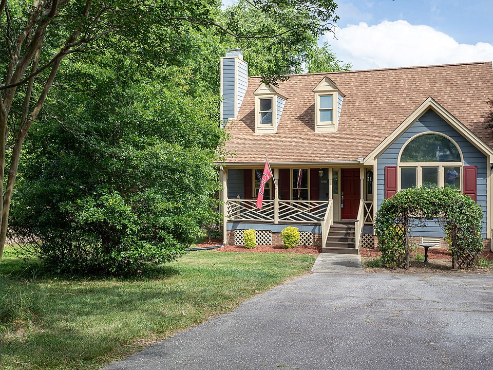 Welcome home to this charming cape cod close to downtown Wake Forest. Awesome location to enjoy all of the amenities of downtown. First floor primary suite with cathedral ceiling and large windows providing tons of natural light. Living area with fireplace, kitchen with some stainless appliances and separate dining area. Upstairs are two additional bedrooms. Relax on the large front porch or hang out on the deck out back. Extra storage area. 2-10 home warranty included! Refrigerator, washer and dryer to convey. Don't miss out on this little gem!