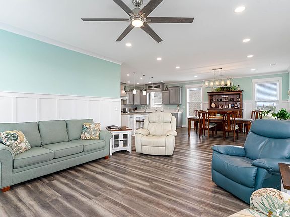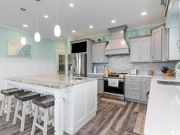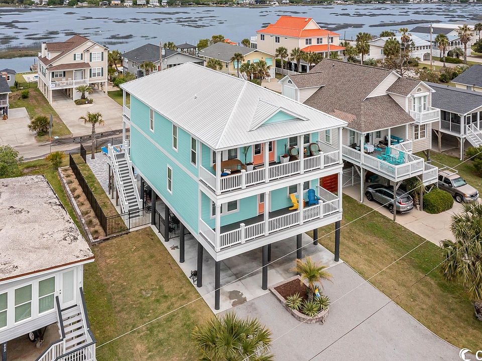 A Home With A View? Look no further...this custom built 5 bedroom/5 full bath, 2 half bath home is just what you are looking for. Located in beautiful Murrells Inlet and 1/2 mile south of The Garden City Pier, you will love what this home has to offer. The reverse floor plan offers a spacious open concept of the kitchen, formal dining room, primary bedroom, living room, laundry room and powder room all on the top floor with breathtaking views of the Atlantic Ocean and the Inlet. The primary bedroom offers a large walk-in closet and an en-suite bathroom with double sink vanity and spacious step in shower with multiple shower heads including a relaxing rainfall. This property comes with a multitude of custom upgrades such as stainless steel appliances, induction range, quartz countertops, Coretec LVP flooring, natural hardwood stairwell, custom blinds, additional ice maker, custom trim, 2 water heaters, James Hardie Dream Collection siding, metal roof, commercial grade bronze fencing, oversized wheelchair accessible elevator to all levels. Home was built with energy efficiency in mind...Simonton high impact storm windows, Ecobee Wi-Fi thermostatsm 16 seer Bryant heat pumps, & spray foam insulation. Additional insulation placed between each floor to decrease noise and increase efficiency. Walk to the sandy shores of South Carolina via the community access just 200' away or relax by the 16x32 inground salt water pool with 8' tanning ledge. The 13x30 garage offers ample storage and additional parking for car or golf cart. Built in 2021, there is nothing to do but bring your flip flops & swimsuits and enjoy all year round. Never rented and fully furnished. Make this your primary residence, vacation getaway, or investment property. Be sure to check out the 3D Virtual Tour. ***All measurements are approximate and should be verified by buyer.