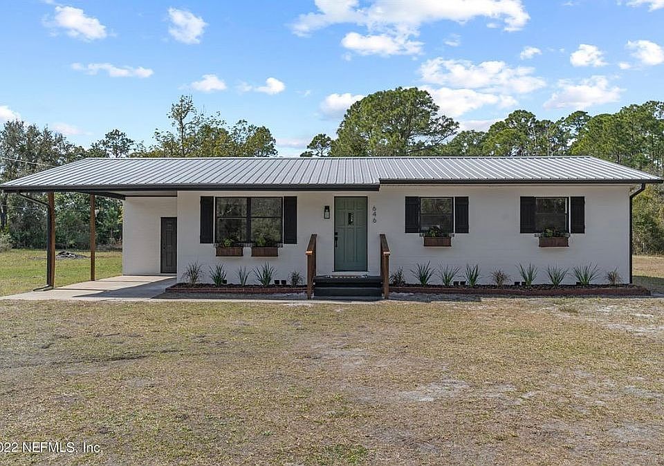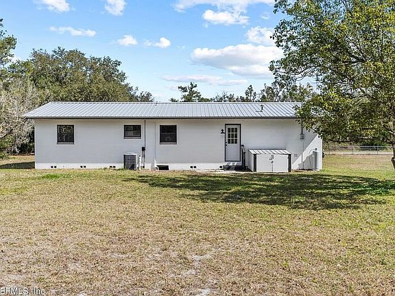 Beautiful 3/1 block home on 2 acres. 4 board wooden fence across the front yard. 2 separate entrances, one to the home and one leading to the 30x50 pole barn to the north of the home.