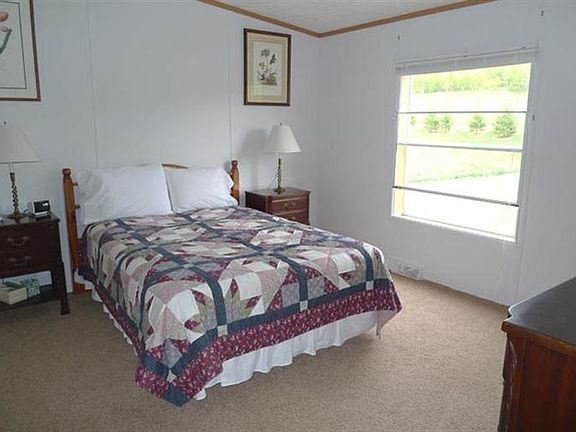 This well-kept home is on 7.7 acres in a quiet and very scenic part of Westford. It's set back from a paved road, with fine valley views. Wildlife are commonly seen from the rear deck. The home is in excellent condition, with master suite, poured foundation and full, dry walk-out basement. Basement doors will accept many mid-size cars. Large lawn, turning to woods in back, with pond and stream.