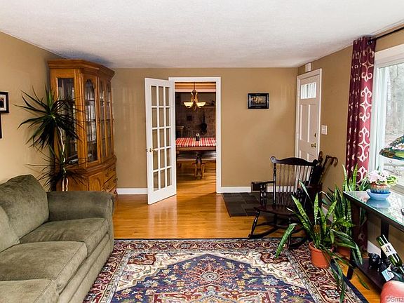 Spend your evenings entertaining on the 3 season porch, enjoying the large, level back yard, relaxing on the patio or unwinding in the hot tub. This 3-bedroom, 2 full bath Oversized Ranch works well for entertaining both outside and inside...with a nice flow Family Room with large wood burning fireplace and vaulted ceiling opens up to 3 season porch overlooking back yard and patio. One bedroom with its own full bath is off the kitchen and two additional bedrooms with convenient "Jack and Jill" bath are located at the other end of the house. A fantastic shed with power, concrete floor, and garage door has an attached fenced-in area for the dog Many nice updates. Well ~ Septic ~ Central Air ~ Oil Heat ~ New Roof ~ and much, much more