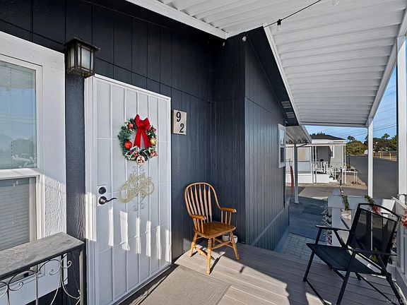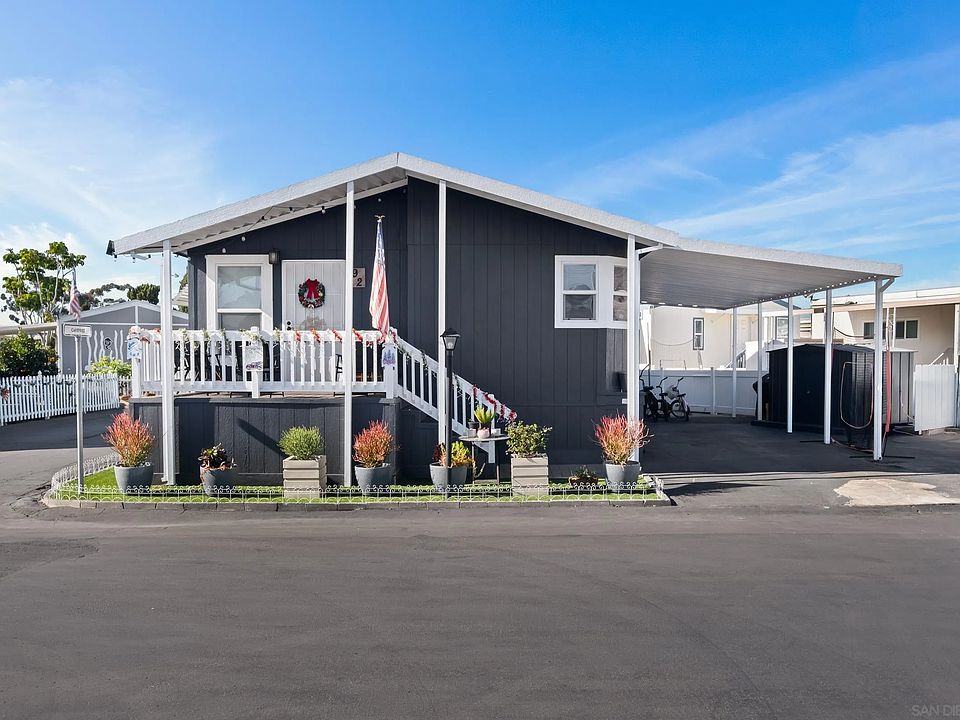 Welcome to this charming manufactured home, built in 2006, nestled on a desirable corner lot in a serene all-ages family park! This delightful residence features inviting skylights that flood the interior with natural light, a spacious full-size laundry room, an additional storage shed. Enjoy relaxing on the great front porch, perfect for morning coffee or evening gatherings. With room for up to 4 cars, parking will never be an issue. Open kitchen with natural light, large pantry, many cabinets, countertops, and a center island. Primary bathroom has a large soaking tub. This home is an excellent choice for families looking for a peaceful community while still being close to the 52 and 805 highways. Buyers must receive park approval. Space rent is $1,190/mo. Don’t miss the opportunity to make this lovely property your new home!