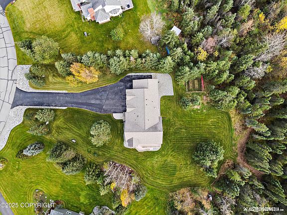 Welcome to your dream home nestled on a sprawling 1.27 acres with stunning mountain views. Constructed with meticulous attention to detail and designed for comfort, this property embodies thoughtful design and scenic beauty. Offering an impressive 3,638 sq. ft. of living space, cul-de-sac, 4 beds, 4 baths, this residence provides ample space for families or those who relish entertaining.This residence's proximity to hiking trails, mtn / fat tire biking trails, and Hilltop ski area renders it highly appealing to outdoor enthusiasts, skiers and bikers. As you approach the property, you'll be immediately struck by its privacy, seclusion and accessibility in one of Anchorage's most desirable neighborhoods. You will love the breathtaking vistas of Flattop and the copious amount of daylight hours that are available throughout the year. Step inside and you'll find thoughtful finishes, soaring ceilings, and bright, open living spaces. Large windows allow natural light to flood the space, creating an airy and inviting atmosphere while offering stunning views of the surrounding landscape. The heart of this home lies in the kitchen which flows seamlessly into the dining and family areas. This beautifully appointed kitchen features custom maple cabinetry, quartz countertops, newer Bosch S/S appliances, abundant storage and workspace. The breakfast bar is perfect for casual dining and entertaining. Upstairs, you'll find a spacious primary retreat with a sitting area and a large WIC closet equipped with the California Closets system. The modern en-suite features a double vanity and a luxurious jacuzzi tub with relaxing views. Each of the spacious bedrooms upstairs offer plenty of natural light and are equipped w California closets storage system. Updated bathrooms ensure that everyone has access to well-appointed facilities. The fully finished basement features a modern one-bedroom MIL suite, offering flexibility for the savvy investor, multigenerational living, guest accommodations or private home office. The 906 sq. ft. garage provides generous space for vehicles and gear. This home delivers on storage! Ideal for the Alaskan lifestyle, there is plenty of parking space for your RV, boat, and all your toys. For outdoor recreation lovers, this property offers flat, usable acreage, abundant space for children and family pets to play, fenced garden area for gardeners to nurture their green thumb. From your backyard deck, enjoy wildlife roaming nearby and explore the numerous trails and nature loop in your own yard. Don't miss this opportunity to make this meticulous Limestone Circle gem yours! Please see Documents for Seller's Upgrades. Buyer to verify all information.