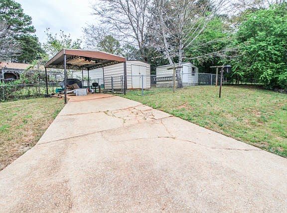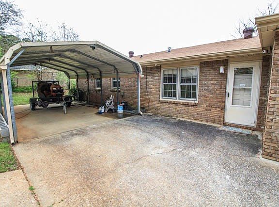 This lovely and all brick home is perfect for the first time buyer. Situated on a nice lot, there is a front walkway that leads to the front of the home with landscaping lining the front. Large portion on the side of the house is yard and provides a driveway to a 2 car carport and back door. There is an additional portion of the driveway that turns off and leads to a single car carport and storage buildings. Great location convenient to shopping, dining, and more.Quaint and ready for new buyer! Upon entering the home, the foyer greets you and formal living room is to the left, along with formal dining room. Foyer goes all the way to the den which offers a lovely built-in, access to back door, and view of the kitchen. Kitchen has a breakfast bar area, lovely flooring, and abundance of cabinets. Door way from kitchen leads directly back to DR. Hallway off of the den leads to master and spare bedrooms. New paint in most rooms! Tiled spare shower in bath!