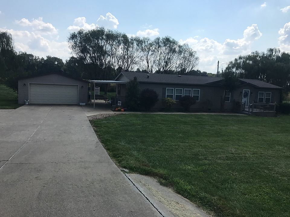Nice country setting with plenty of trees and green grass! New electric heating and air installed last year. Windows and siding are 3 years old. Bathrooms remodeled recently. Large garage and out building. Nice turn key home in rural setting. Motivated sellers! Make an offer!