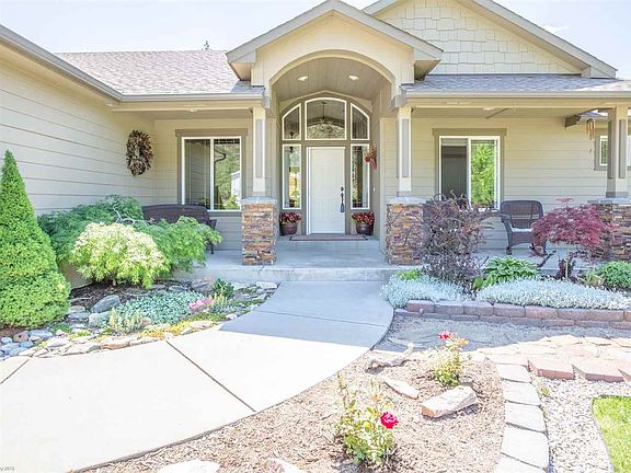 Fully finished 5 BD/3 BA rancher on 1+ acre lot. Wonderful floor plan with open kitchen/dining/great room. Hardwood floors, plantation shutters, granite counters and hickory cabinetry. Large covered deck for year round use. Gorgeous yard with berries, fruit trees, flowering plants and more. Lots of storage, well balanced use of space. 3-car garage. Lower level cool storage room (could be wine cellar). Close to new 40 acre Tall Pines Park and close to Lake Spokane/Long Lake.