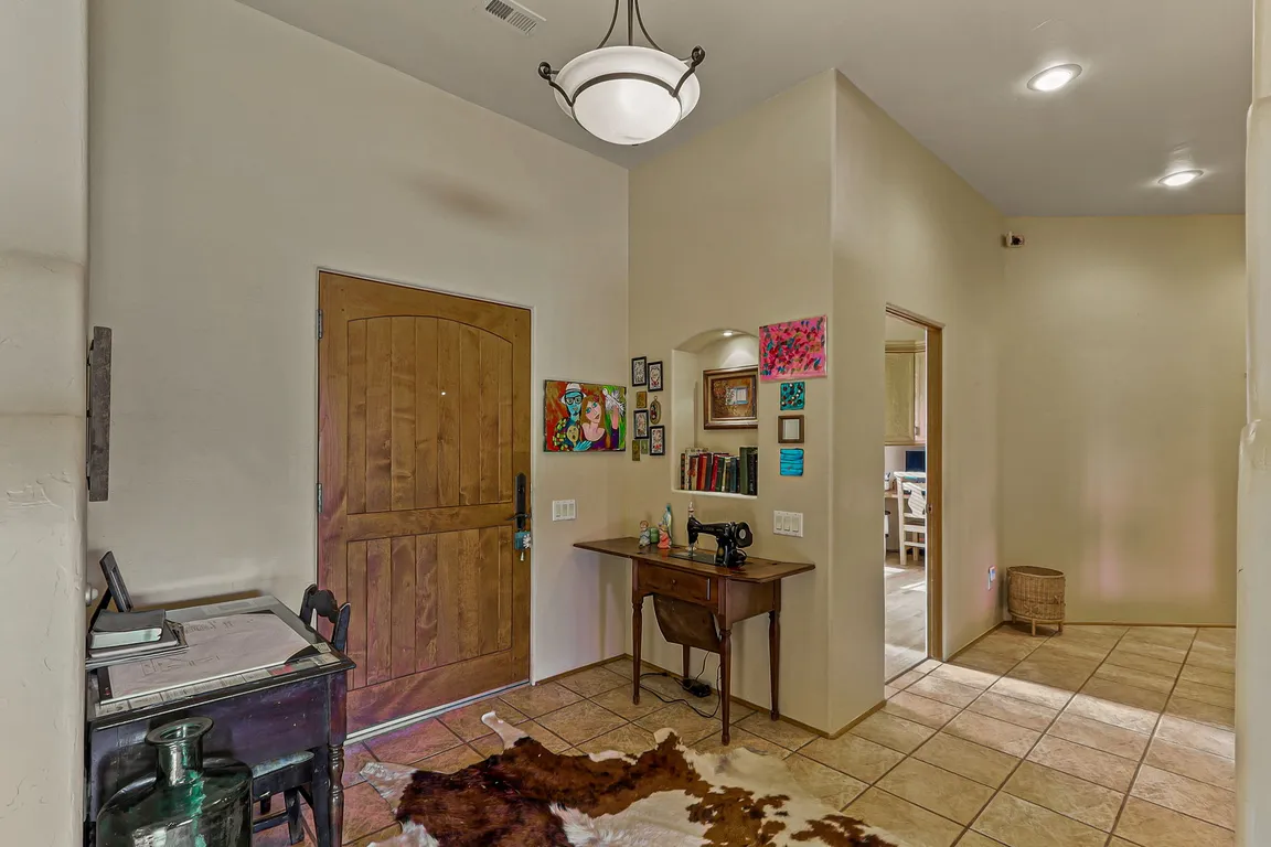 Stunning Southwestern Home with Workshop, Observation Deck & Gourmet Kitchen. Experience timeless elegance and craftsmanship in this beautiful 3-bedroom, 2.5-bath, 3600+ sq foot home featuring a 3-car garage plus a spacious workshop--perfect for hobbyists, collectors, or extra storage. In ground pool. Architectural details throughout, including arched doorways, vigas, nichos, and ...