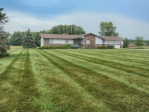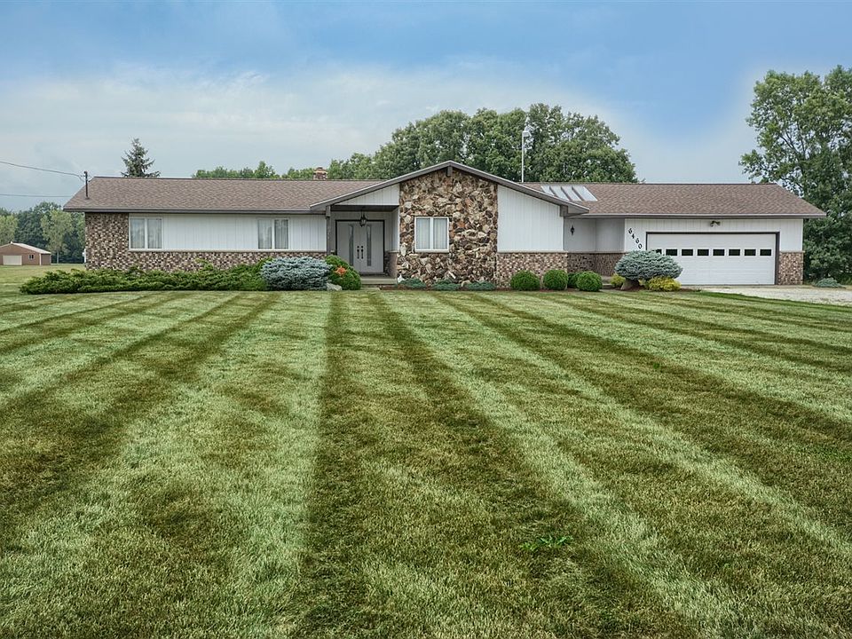 Charming home on stunning, peaceful 10 acres! Immaculate landscaping and sprawling font yard sets the tone for this spacious ranch. 3 Bedroom/2 Baths and 2,048 square feet of living space. Large, open kitchen, fireplace lit family room and full basement. Come see why the sellers hate to leave!