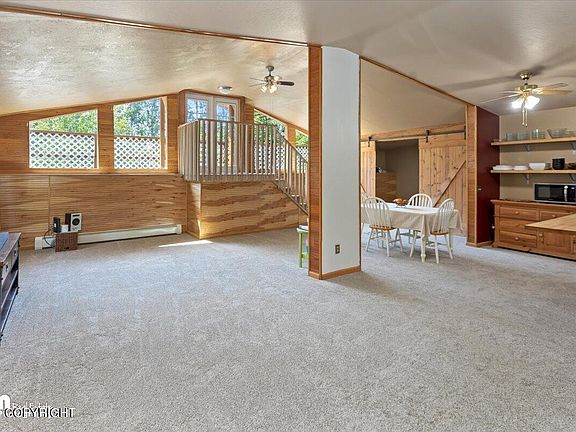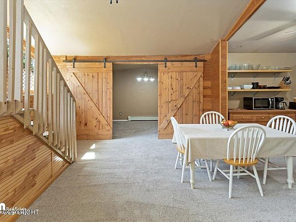 Charming 3-Bedroom Home with Spacious Garage and Stunning Views in Wasilla, Alaska. Discover your Alaskan dream home in this beautifully updated 3-bedroom, 2-bathroom property, perfectly situated on a sprawling 1.43-acre lot. Built in 1982 and thoughtfully maintained, this 2,152 sq. ft. home offers modern comforts amidst serene natural beauty.**Key Features:****Generous Living Space:** Enjoy2,152 sq. ft. of thoughtfully designed living space, featuring brand-new carpeting in the main living areas. - **Expansive Garage:** The incredible 4-car garage boasts 1,196 sq. ft. of space with 12.5' ceilings and a 220-amp electrical service, perfect for car enthusiasts or hobbyists. - **Outdoor Delights:** Savor the bounty of raspberry bushes and apple trees on your property. The fenced-in pet area with a remote sensor power pet door ensures your furry friends can roam safely. - **Separate Shop:** A powered, stove-equipped shop offers additional workspace for projects or storage. - **Breathtaking Views:** Enjoy stunning views of Pioneer Peak from your large deck, an ideal spot for relaxation or entertaining. - **Convenient Location:** This property is perfectly positioned for commuters, offering easy access to local amenities and transportation routes. Don't miss the opportunity to own this unique and versatile home in Wasilla. Whether you're looking for a peaceful retreat or a place to indulge your passions, this property has it all. **Schedule your showing today!**
