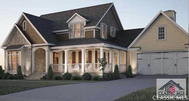 This new construction home is located in North Oconee on a 1.65 acre lot. It is not in a subdivision so there are no covenants and no HOA dues! The floor plan is Southern Living's Stone Creek plan which includes the master bedroom plus a guest suite on the main level with 3 additional bedrooms and 2 bathrooms upstairs. The kitchen is open to the living room with a breakfast area and a formal dining room. There is a large L shaped covered front porch and a back porch and 2 car garage. The interior will include hardwood floors, granite in kitchen and bathrooms, vaulted or trey ceilings, and lots of trim.