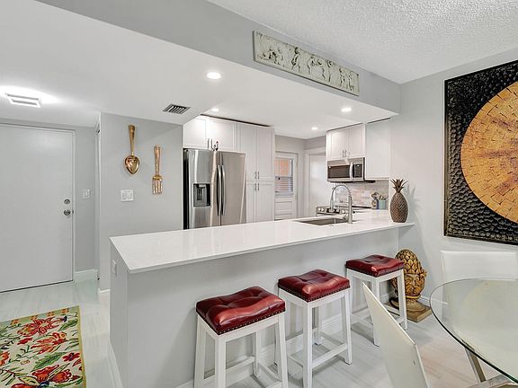 CUSTOM ONE OF A KIND BOCA CONDO TOTALLY REMODELED 3 BED 2 BATH .BEST UNIT IN ALL OF BOCA TEECA.SUPERBRIGHT AND MODERN.FURNISHED. LOWEST HOA IN BOCA TEECA!!!! Move in ready! 1,300 square feet and huge screened patio overlooking a garden/trees. Tile floors, white wood cabinets, quartz counters, new ss appliances, top floor, washer/dryer in unit, LED lighting, gorgeous bathrooms, low HOA, 55 PLUS BUILDING.WATER/CABLE/INTERNET INCLUDED IN HOA. close to beach, shopping, restaurants, Mizner Park, Delray Atlantic Ave.