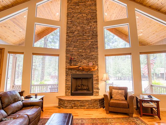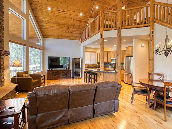 Stunning Cabin located in the high desired, Pinetop Lakes Country Club. This 3 Bed / 2.5 Bath + LARGE Loft home is on a .37 lot, surrounded by tall Ponderosa's. Inspire your friends and family with your floor to ceiling rock fireplace that has HUGE windows bordering it, to make you feel like you're outside. With it's Open Floorplan design, you'll walk into a gorgeous kitchen with stainless steel appliances + RO, Gas burning stove, tons of countertop space, and plenty of cabinetry. The Master Ensuite has a jacuzzi tub, walk in closet and rock Fireplace. Enjoy the cool mountain air and unwind on your decks. This home has rec center privileges, including: swimming pool, hot tubs, exercise facility, tennis & pickleball courts and game room. Click 'More' The outdoor living space is amazing with the extra large decking plus the covered wrap around deck in the front. 9' Ceilings LARGE windows with lots of light Amazing location! This is the cabin you have been waiting for. Circular driveway with plenty of parking This home is complete with an EXTRA Large Garage and 2 additional fridges. Handicap height Toilets. Furnishings available outside of escrow. NO SIGHT UNSEEN OFFERS Imagine living in the White Mountains of Arizona where you have 4 beautiful seasons and where you can breathe in the fresh mountain air and enjoy the 40 lakes and over 600 miles of rivers and streams. In addition to the amazing fishing, this area has one of the most extensive trail systems in the south west for hiking, biking, horseback riding, quading and more. Sunrise Ski Resort is also just 40 minutes away with 3 beautiful mountains to ski, snow board or sled. If shopping is your interest, you will love the antique stores and the multitude of arts and craft shows that happen in the summer. The music festivals have something to fit everyone's enjoyment. Do you love to golf? There are 7 amazing golf courses, 3 that are public. The White Mountains, where this home/cabin is the best kept secret of Arizona! Come and explore and enhance your living! Pinetop-Lakeside was also voted 'Best Cabin Region in the U.S"... Embrace the MAGIC!