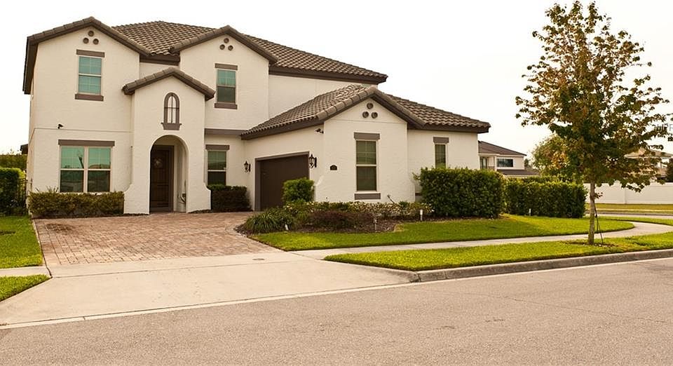 Stunning 5-Bedroom, 4-bath home located in the exclusive town of Windermere, FL. This beautiful home sits on a corner lot with a spacious swimming pool, fenced-in backyard, and a covered lanai. Excellent location with a good view to Disney's night fireworks. Beautiful kitchen with upgraded cabinets, granite countertops, SS appliances, and built-in oven. Floor tiles all throughout the first floor and wood laminate on the second. Home is ready to go and hard to find.