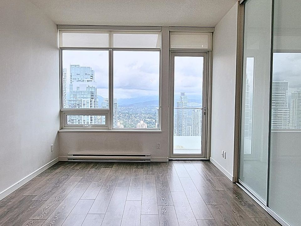 Elevate your lifestyle on the 51st floor at Metroplace! This bright 1-bedroom, 493 sq.ft. home boasts jaw-dropping city and mountain views from every angle. Enjoy a modern kitchen with quartz countertops and stainless steel appliances, in-suite laundry, plus a private balcony to unwind. Just steps from SkyTrain, Metrotown Mall, Crystal Mall, and Bonsor Rec Centre. Access premium amenities like a gym, party lounge, guest suite, and garden. Ideal for first-time buyers, professionals, or investors seeking unbeatable value. Includes parking & locker — your dream home awaits! 1 parking 1 locker included.
