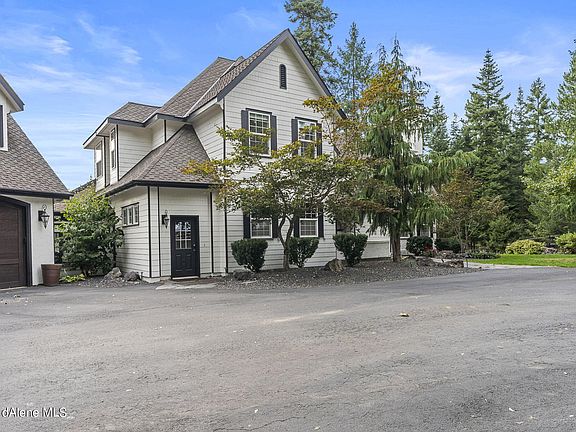 This exceptional estate property located in the coveted Cougar Gulch area is truly country living meets modern luxury. Situated on 10.75 acres of horse-ready land with a Barn, this gated property has a 30x50 SHOP. The main home has over 5500 sq ft, attached 6 car garage with drive thru door, a 940 sq ft studio apartment complete with its own kitchen, bathroom, and private entrance. The main residence boasts luxury and comfort with stunning vaulted ceilings, new light fixtures, blinds, paint, and flooring. Dutch doors throughout the home connect the indoors with the serene outdoors. The updated kitchen is stylish and functional with a coffee/wine bar, walk-in pantry, and prep area with sink. Formal and informal dining areas, living areas, and outside decks and patio provide the perfect settings for entertaining. The exquisite main floor primary suite features a stone fireplace, dual closets, steam shower, and a freestanding tub. Upstairs is a bonus media room, two bedrooms, a full bath, and 2nd Ensuite Bedroom. Do not miss the multiple use Amazing Laundry Room! Landscaped yards have auto sprinklers, gazebo, water feature, Generac Generator, multiple fenced pastures and a chicken coop. All this rural charm is only 10 minutes from downtown Coeur d'Alene!
