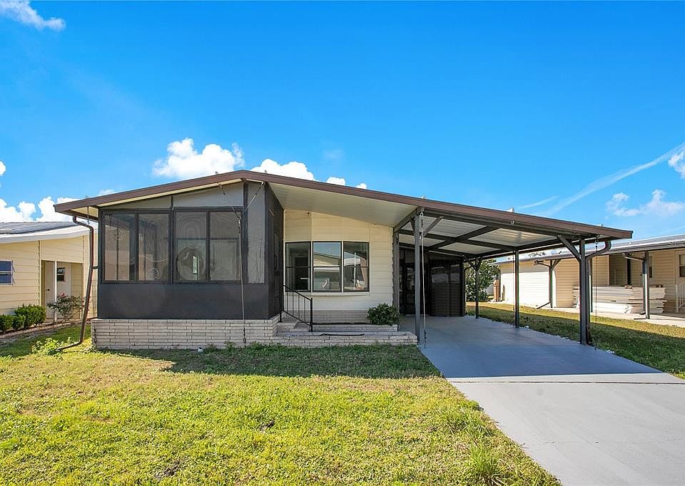 Back on the market due to buyer financing falling through! Welcome to this charming 2-bedroom, 2-bathroom home located in the peaceful 55+ community of Brookhaven Village in Winter Haven, where you'll enjoy $0 lot fees! Whether you're a first-time homebuyer, investor, or seasonal resident, this home checks all the boxes. As you arrive, you’ll appreciate the covered carport for added convenience and not one—but two screened-in patio areas, ideal for relaxing with a morning coffee or winding down after a long day. Step inside to a bright and airy open layout, filled with natural light. The living room, dining area, and kitchen flow seamlessly together, creating an inviting space for everyday living and entertaining. Just off the living room, enjoy easy access to the front screened porch for outdoor enjoyment. The kitchen features crisp white cabinetry, sleek stone countertops, matching stainless steel appliances, and a center island with bar seating—perfect for quick meals or casual dining. The spacious primary bedroom includes a walk-in closet and a private en suite bathroom complete with a tiled walk-in shower. The second bedroom offers plenty of natural light, another walk-in closet, and easy access to the second full bath. Out back, you’ll love the oversized screened patio—an ideal space for hosting family get-togethers or simply enjoying a bit of peace and privacy. An attached storage shed also houses the laundry area, providing extra functionality. All of this in a well-maintained community close to schools, restaurants, shopping, entertainment, and major roadways.Don't miss this incredible opportunity to own a home in a vibrant and welcoming community!