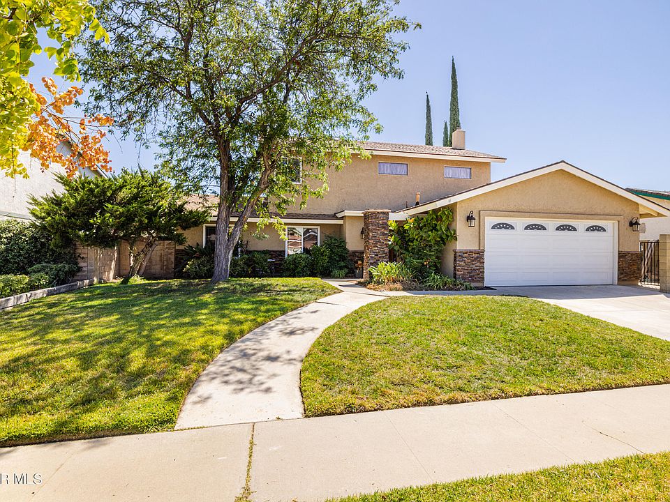 This beautiful 5bed/3bath is a must see! Located on the east end of Simi Valley, this home boasts a spectacular view of the mountains and is equipped with solar. The downstairs features 3 large bedrooms including the Master bedroom. The 4th room has been converted into an office. Upstairs has a large game room/loft and 2 large bedrooms. The kitchen, downstairs a/c, and windows were all updated 6 years ago. There is brand new a/c upstairs as well. The backyard features a pool/spa with a newer heater and filter. The fruit trees include an orange, loquat, and berry trees. Make this beautiful home yours!