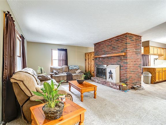Welcome to this cozy raised ranch home nestled on a sprawling 5.65-acre property surrounded by a lush canopy of trees. As you approach, a welcoming front porch invites you to enter this well-appointed residence. The main floor boasts a seamless flow between the living room and kitchen, creating an open and inviting atmosphere. The living room features a warm wood-burning fireplace. Laminate wood flooring graces the kitchen, complemented by laminate counters and a large pantry. Adjacent to the kitchen is the dining room, offering walkout access to the back deck. The main floor is also home to two generously sized bedrooms, each adorned with double closets and overhead lighting. The updated full bath showcases vinyl flooring, a sleek one-sink vanity, and a tub-shower kit. Convenience is key, with the laundry located discreetly in the hall closet. Descend to the walkout basement, where a spacious rec room awaits, complete with a wood burner to keep the space warm and inviting. An additional full bath on this level boasts laminate wood flooring and a shower. The basement seamlessly connects to the 2.5-car attached garage, equipped with automatic openers, drains, and electricity. For car enthusiasts or hobbyists, a separate large garage with space for ten cars is a remarkable feature. This garage includes a hydraulic truck lift, a pulley chain system, heating, and even a half bath, making it an ideal space for automotive projects or extra storage. Additionally, a shed with electric is available to cater to your storage needs. The home's exterior is a true haven, with a back deck overlooking the expansive yard and a fire pit for cozy evenings under the stars. The vast property provides a sense of privacy, creating a serene retreat in nature. This raised ranch home offers comfortable living spaces and an abundance of amenities, making it a delightful retreat to call home. Don't miss your chance; schedule your showing today!