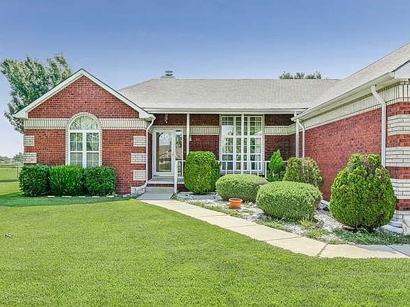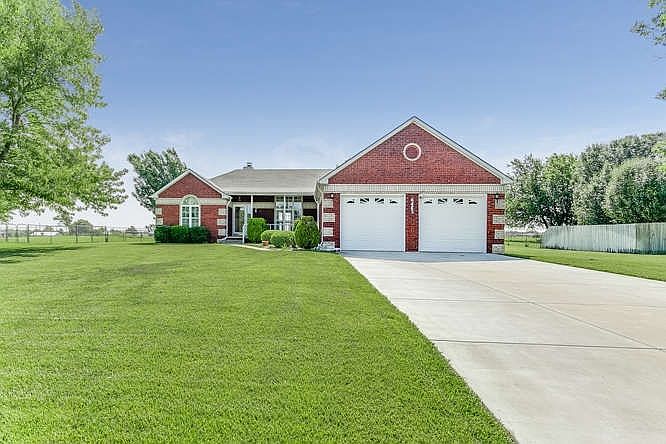WELCOME to the best little area of Derby! Fairway Meadows Subdivision offers owners a quiet area where most of the homes are situated on some acreage. Which provides a quiet country feeling while you are very close to the city and amenities and golf courses. Derby, Rose Hill, and Wichita are minutes away. This one owner home was built in 1993 on a little over 1/2 acre lot and has been well taken care of. The brick and stone make the entrance to this home stunning with a covered front porch to welcome your guests inside. Featured in this all electric, 5 bedroom ranch home are 3 baths, main floor laundry/mud room, 2 car attached garage as well as a 1 car detached. Back yard is fenced with gates for access. The formal living room has a wood burning fireplace and open feeling to the dining and kitchen. The finished basement has a very large family room, 2 more bedrooms, a bath, and a very large storage room. This storage room is over 400 sq ft and could be finished for more living space! Would make a wonderful theater room. Just off the kitchen is a lovely enclosed sun room that overlooks the backyard and acreage behind. Or you can exit the sun room to enjoy the outdoors under the covered patio. The heat and air were new in 2016, roof new in 2010, and new carpet in living room and stairs in 2017. Come take a look.
