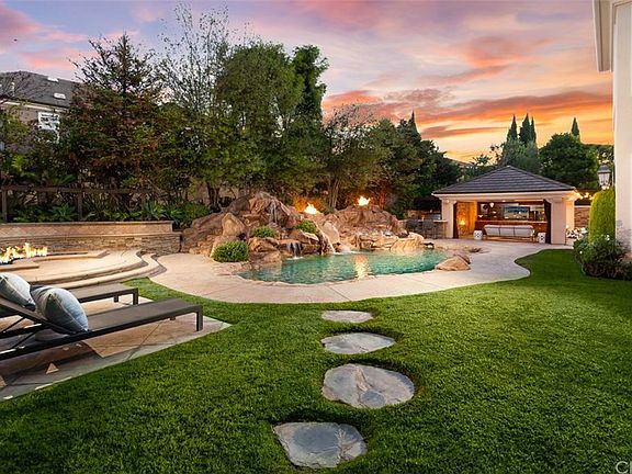 This impeccably designed MANNING home in SeaCliff's "The Bluffs" has undergone countless upgrades leaving no surface untouched. One of only a handful of this special floor plan in the neighborhood known for its lavish custom estates. The main living areas open to the richly landscaped outdoor entertaining space, complete with detached California room w/ heaters, fireplace, full cooking center, TV, pool and spa with cascading water spillways. Over 6,000 sf of living space, this 5 bedroom, 5.5 bathroom estate offers everything one would desire in an ocean-side retreat. You immediately notice a functional floor plan featuring an elegant living room with fireplace; formal dining room overlooking two patios with tranquil water feature, private main floor bedroom w/ en-suite bath, large office, a chef's dream kitchen with designer appliances, temperature controlled wine refrigeration, custom cabinetry, Calcutta counters & designer back splash. Stunning hand distressed oak flooring in a rich finish enhances the main level living space. The upper level hosts a large media / game room, 4 private bedroom suites, each with en suite bath while the unparalleled master suite offers a beautiful fireplace, private balcony, and expansive master bathroom with soaking tub and separate his-and-hers vanity and closet areas. Impressive over-sized 4 car garage with one single-car offering the potential to be converted to a separate casita or maids quarters.