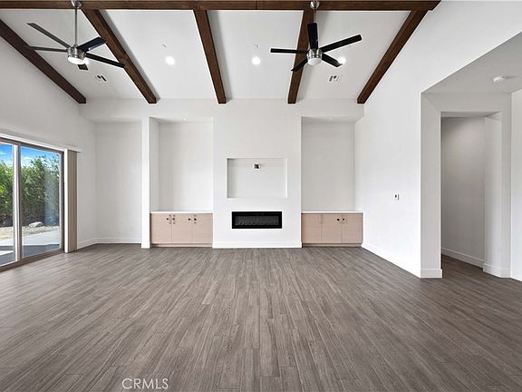 Built in 2020, this gorgeous Spanish-style custom home is located in the premier Mission Lakes Country Club. Beautiful vaulted ceilings welcome you inside this expansive home with modern aesthetic, overlooking the picturesque snow-capped mountaintops. The large living room enjoys the luxury of an electric fireplace, flanked by two built-in cabinets, wood beamed ceiling, and large sliding glass doors overlooking the yard and mountains. The modern kitchen has wood paneled cabinets, quartz countertops, stainless steel Samsung appliances, an island, and a pantry. The dining room is off the kitchen and also has sliding glass doors to the backyard. The master bedroom boasts it’s own electric fireplace, sliding glass doors to the yard, a large walk-in closet, and ensuite bathroom. The luxurious bathroom enjoys a walk-in shower with large bench, a separate soaking tub, and a huge vanity with double sinks and lighted mirrors. Two of the other bedrooms have ensuite bathrooms, both with quartz countertops and tiled showers. There is also a laundry room with a utility sink and built in cabinets, for all your organizing needs. Drought tolerant landscaping cover the front yard, and sky’s the limit in the backyard, where there is currently privacy bushes lining the fence. The covered patio allows for shade on the those hot summer days. Home also has a full 2-car garage plus a Golf cart parking area. True country club living at the Mission Lakes Country Club, where there are numerous amenities, including unlimited golf for two owners on title of the home, included in the HOA dues. It’s own restaurant and cafe, and even motel rooms for guests, if needed. The golf course has PGA pros on staff. Other amenities include tennis courts, pickle ball, fitness center, a clubhouse and more! Enjoy being a short drive away from downtown Palm Springs and the airport.