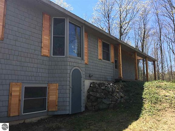Location, location! Minutes from downtown Traverse City and on over three acres, this lovely and spacious home has been updated beautifully and artistically by the builder who owns it! This classic three-bedroom, two bathroom cedar shake ranch with lovely red oak flooring throughout features curb appeal, great layout, en-suite master, Art Deco features, and a partially framed-in full basement with high ceilings, ready to finish. The gourmet island kitchen complete with farm sink, quartz countertops, and plenty of storage and work space is open to the dining room and provides a home hub. Beautiful landscaping provides privacy and tranquility, with a workshop and shed on the lower portion of the terraced land. A happy play place and fire pit in the back yard provide serenity and safety. Well-priced and move-in ready, this home is a find!