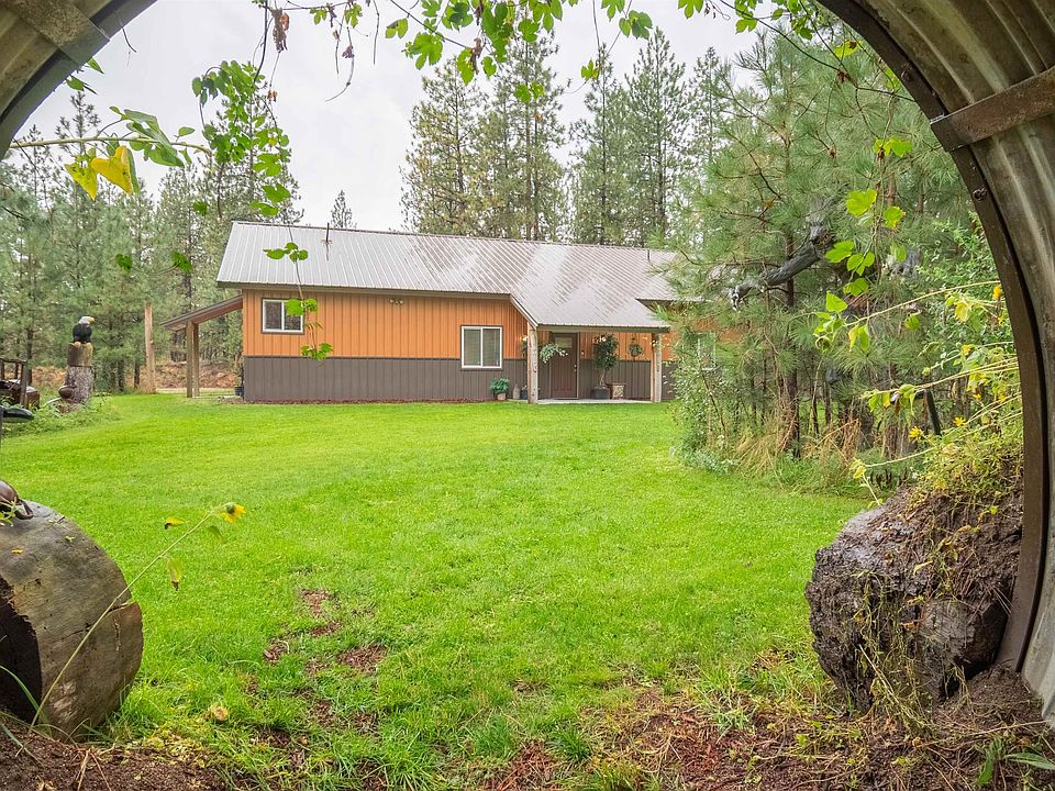 Welcome to Nine Mile Falls! This like new condition 3200 sq. ft. shop house is enormous with many possibilities. This highly efficient home has 2 primary suites, one in-law set up with an exterior door, soaring 13ft ceilings, 4 bedrooms, 3 baths all on 1 level, 40x24 attached shop. 4 treed acres, including 3 RV spaces w/power and water. The seller has rented in the past. Metal roofing and siding offer durability. Room for horses. Enjoy privacy and solitude as the property is enclosed with 10ft berms that can be planted with vines and wildflowers. A ten-foot entrance gate offers security. Only 5 miles from restaurants, grocery stores, and Willow Bay is only 5 minutes away!