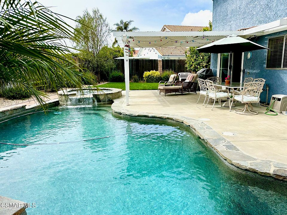 Fantastic Saltwater Pool Home With Gated RV in Beautiful East Simi Valley. Easy access to the 118 and short drive to the San Fernando Valley. You will love the peaceful mountain views surrounding this fabulous and very well maintained home that has one of the largest front yards in the neighborhood. Double door entry opens to the living room with vaulted ceilings and an adjacent dining room. The updated kitchen features granite counters, beautiful maple cabinets and brand new GE stove, dishwasher and microwave (2 year old LG regfrigerator included). Upstairs you will find three bedrooms featuring a large master bedroom with spacious walk-in closet and a balcony to enjoy the views of the neighborhood and hills. There are two additional bedrooms upstairs and what makes this floorplan extra special is the size of the last bedroom which rivals the master in size allowing plenty of room for gaming, hobbies or anything you might want the extra space for. There are ceiling fans in each bedroom and this home is equipped with a newer HVAC system, leased solar, 240 volt power source- ideal for charging electric vehicles, and even includes a three year old back up generator to power the house in the event of any outages. You will especially love relaxing outside and enjoying the sparkling saltwater pool and spa (PebbleTech) with the views of the surrounding hills. The pool filter is brand new and the pool heater is approximately one year old. And if that's not enough, there is also a paved and gated RV area and a second spacious side yard. Also included are the washer and dryer, fire pit and Weber grill. This fabulous home will go fast, you won't want to miss it!