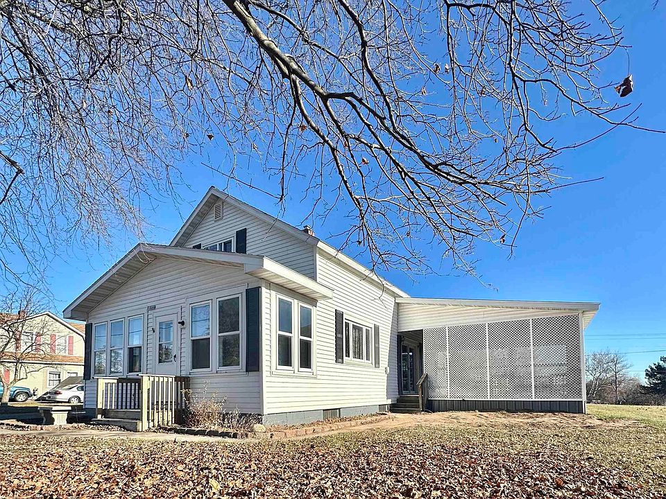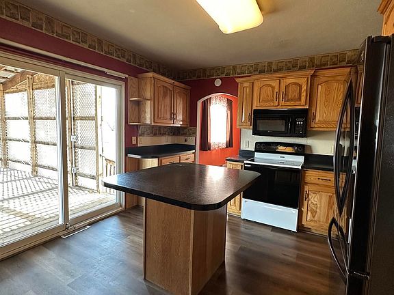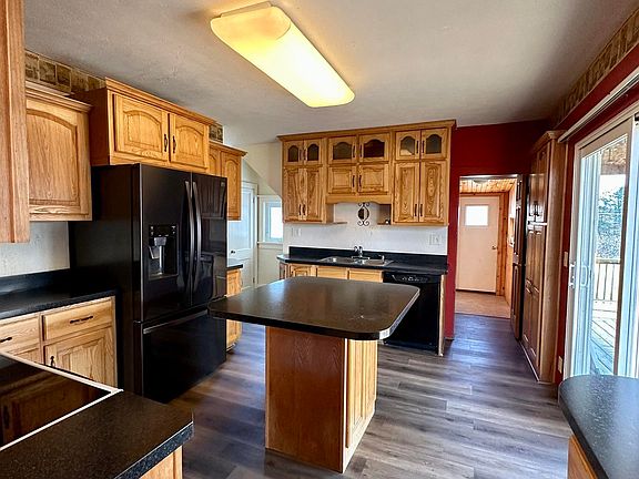 This home is the perfect size and priced right for many buyers. Main floor bedroom and full bath. Quality hickory kitchen with plenty of cabinet storage and island. Patio doors from the kitchen lead to a large covered deck with privacy panels and ceiling fans. Knotty pine tongue and groove upstairs and both upper bedrooms have full wall closets on each side. Upper bedrooms are jack and jill layout. There is an additional full bathroom, laundry area, and 13x11 bar area in basement. Front enclosed sunroom. Central air. 2.5 car garage with work area. Wells township taxes.