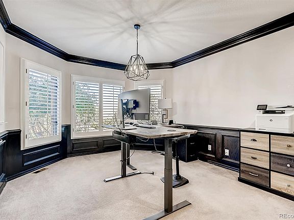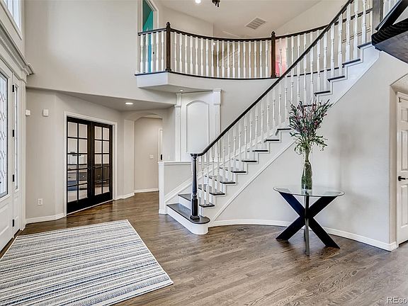 Enjoy mountain view sunsets and the new in-ground pool from this gorgeous 5br/6ba luxury estate in Centennial. The new hardwood flooring, quartz counters, stainless steel appliances and an incredible master suite offers space to relax and high-end features. This home's setting feels like country living but is only minutes to amenities and freeways. Located on 1.39 acres, the new pool, play area, dog kennel and irrigated fenced backyard offers incredible entertaining and play areas for every age. The main floor has been extensively updated with new hardwood flooring, counters, paint and a front door with leaded glass and side panels for a great first impression. Easily manage the new garage doors, furnaces/AC, security, irrigation, fire/carbon detectors, via your smart phone. The gourmet kitchen overlooks the family room and is near the formal living/dining rooms that open to the backyard. The spacious office conveniently sits off the main foyer. Upstairs, the master retreat includes a 3-sided fireplace with sitting area and balcony. A large new bathroom with walk-in shower, contemporary soaking tub and large walk-in closet is stunning. Spacious 3 bedrooms and 2 baths round out the upper level. The basement with theater room is wired for projection and is ready for movie night. Use the flex room off the spacious second family room as a second office, hobby or exercise room. Guests will love the private guest suite with attached bath and private laundry area. The main laundry room has a dog door to the backyard kennel and the 3-car garage offers storage for cars and toys. The Meadows at Saddle Rock community contains just 13 homes, and offers luxury and views all while being minutes to schools, shopping, dining and freeway access.