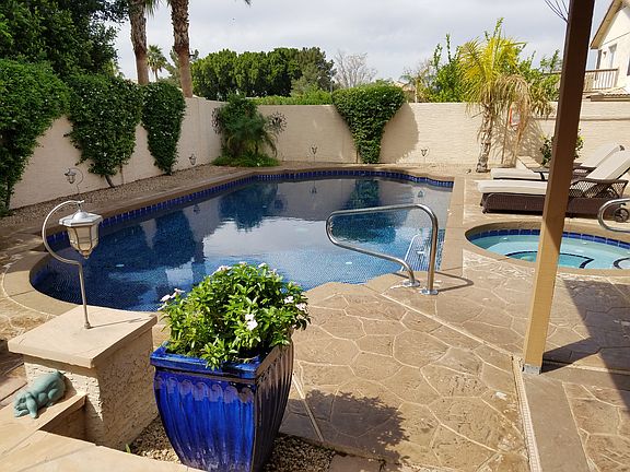 Beautifully remodeled, 4 Bedroom home that you will fall in love with! Imagine the wonderful memories you will create entertaining in this light & bright home with surround sound, spacious & open with soaring ceilings. Remodeled Kitchen has upgraded cabinetry, granite counters, stainless appliances & reverse osmosis. Cozy & inviting describes this family room with a fireplace those chilly Az days. Master bedroom has dual vanities & large walk in closet. Feel like you are on vacation in your own private backyard with blue tiled pool & spa, mature landscape including lemon, orange, grapefruit trees. HVAC & Hot Water Heater only 3 years old. Additional blown in insulation, Affordable utility bills! Water Softner & Garage Cabinets. Close to fine dining, local cafe's, schools & shopping.