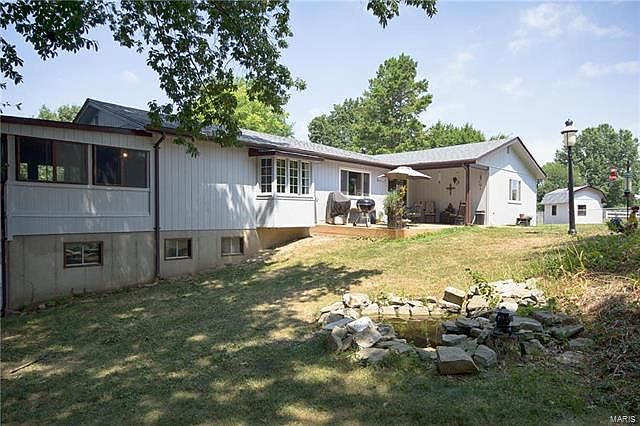 Tranquility, peace, a rolling stream, open ground, 8+ acres, a sprawling ranch, surrounded by trees, a mini farm AND you are 1 minute from Walgreens! Now this is the corner of Happy and Healthy!! Top rated Oakville Schools, convenient to highways & shopping. Hear the boats toot down the Mississippi River! New roof installed home - freshly painted roof on barn! Enjoy the open floor plan of the easy to entertain in home & the screened porch off the family room lets you enjoy cool evenings. Bring your horse! It's ok! Gather your fresh eggs - chickens can live here too! Full basement has tuck-under garage that can park both cars, the tractor or 4 wheeler, or put the gorgeous boat in there - that you never had room for! Partially finished remainder with full bath lets you entertain even more people!! So much ground! Add onto the home should you desire! Or keep the wide open spaces. There's so many opportunities! Or subdivide & off you go!! Pool As-Is.