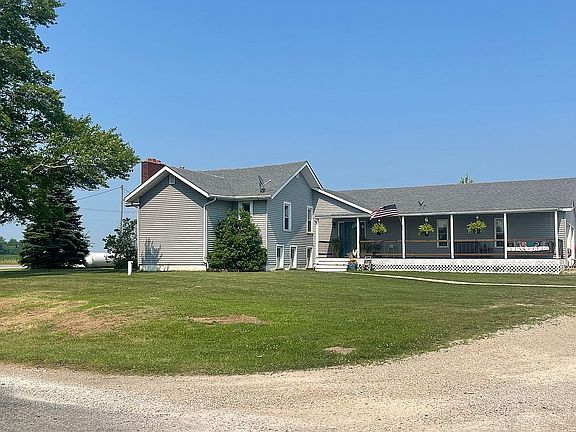Beautiful country home with amazing porch close to town on 1.38 acre corner lot. The open concept living room/dining room/kitchen has vaulted ceilings and hardwood floors. Kitchen has newer cabinets and countertops with large one basin sink and large island with seating along with matching whirlpool appliances. There is a half bath off the kitchen as well. Upstairs is 3 bedrooms all with walk-in closets and a full bathroom. Downstairs is a large master bedroom with large walk-in closet and seating area with wood burning fireplace. Attached is a full bathroom as well as the laundry/utility room. There is furnace plus a wood burning stove all connected to the ductwork plus central air. A mud room with built in organization leads to the oversized two car attached garage with 13x8 kick out for tools or toys. Outside there is a large deck that leads to a 30ft above ground pool. Contact owner for showing/more info 260-701-1602 (call or text).