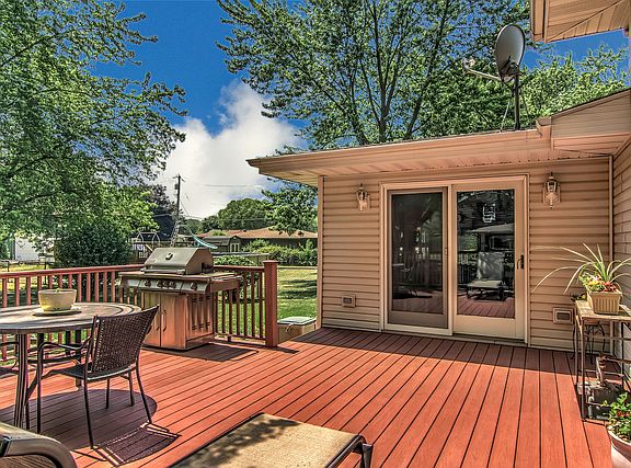 Must see this 3 bedroom 1.5 bath tri-level with 2 car garage & many updates on over .66 acre lot in town! Main level offers large living room with wood flooring & bay window, beautifully remodeled kitchen featuring ceramic flooring - 36 cherry cabinets with crown molding, appliance garage, under cabinet lighting, pantry & island that opens to formal dining addition with ceramic flooring & sliders to composite deck, upper level offers 3 bedrooms with Pergo flooring & ceiling fans & large full bath with ceramic flooring, lower level includes spacious rec-room , nice laundry, 1/2 bath & 10x5 foyer area with built-in storage off 2 car attached garage, central air approx. 6 years old, Andersen tilt-in windows, oak trim & 6 panel doors, 24' pool with main drain & more close to 80/94, Toll Road, South Shore & Marina!