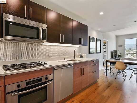 Seller pays ONE YEAR of HOA dues with a List Price offer. Welcome to Emerson #503! This spacious corner unit features 2 bedrooms and 2 bathrooms and exudes modern luxury with chic finishes throughout. Highlights include an expansive open concept, high-end kitchen, spacious living room with views of the Oakland & Berkeley hills including UC Berkeley's Campanile and the glimmering lights of the Claremont Hotel. Master suite includes a large walk-in closet and a spacious full bathroom. The second bedroom has views of the bay, Mt Tam sunsets and access to the private balcony. In-unit washer/dryer and one parking space in the secured garage. Last but certainly not least, don't miss the rooftop deck which offers panoramic views of SF and multiple lounges. It is truly an entertainer's dream. Within blocks are popular cafes, restaurants, breweries, and access to public transportation. Walkscore of 89 and access to both the express busses and BART make a commute into the city a breeze.