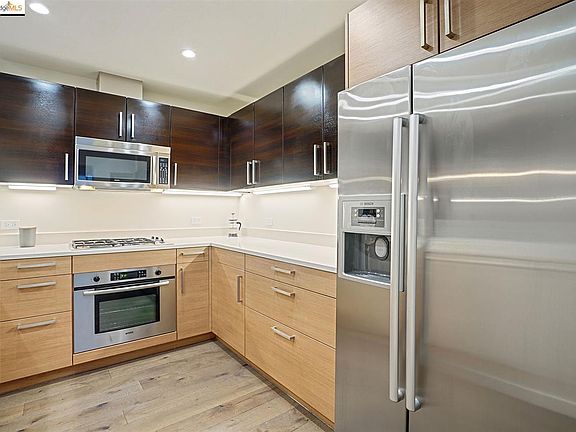 Welcome to Emerson #506, arguably one of the best condominiums that Oakland has to offer! This spacious corner unit is the largest in the building and comes with 2 bedrooms and 2 bathrooms. The unit exudes modern luxury with high end finishes throughout. The expansive kitchen features Becker cabinetry, BOSCH appliances, and Quart counters. Oak floors offer depth while designer colors and light fixtures really set the mood. Every room offers a view, whether of downtown Oakland or straight on SF, Bay Bridge and The Golden Gate. The large private balcony is perfect for a sunset cocktail or morning coffee. Don't miss the rooftop deck which offers panoramic views and multiple lounges making it truly ideal for entertaining. Beyond the amenities of the building are the offerings of the neighborhood. Within blocks are popular cafes, restaurants, breweries, and access to public transportation. Walkscore of 89 and access to both the express buses and BART make a commute into the city a breeze.