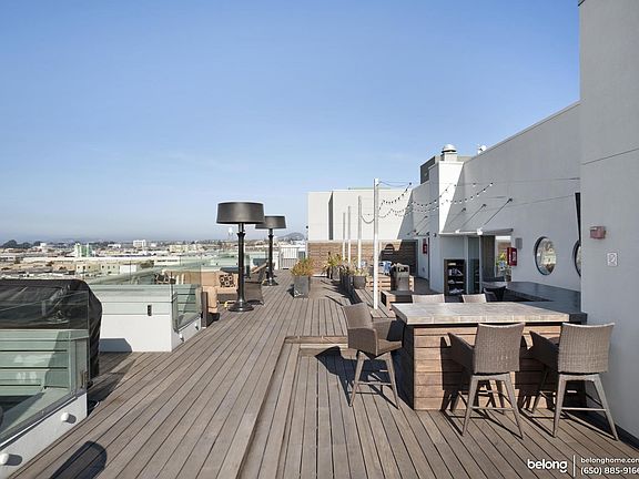 New twilight photos! Bright and modern 2 bed/2bath corner unit with sweeping panoramic views of Golden Gate Bridge, SF, Alcatraz, Oakland and bay. Enjoy a full length roof top deck with couches, heat lamps, BBQ, fridge, and bar area to soak in the gorgeous views and entertain. The large kitchen has Studio Becker cabinets, designer backsplash, quartz countertops, and stainless steel BOSCH appliances with double door refrigerator, dishwasher, gas stovetop, built in oven and microwave. As well as an in-unit BOSCH washer/dryer, wood floors and inset lighting found throughout the home. The main bedroom ensuite has a large walk-in closet, Bay views, and extra storage cabinets have been added in each bathroom. The private balcony is spacious and offers the same best Bay views with no upstairs neighbors! Perfect location by Paradise Park Café, James and the Giant Cupcake, Novel Brewing, City Sports Club, Berkeley Bowl West, and Bay Street. Minutes to public transport and freeways access.