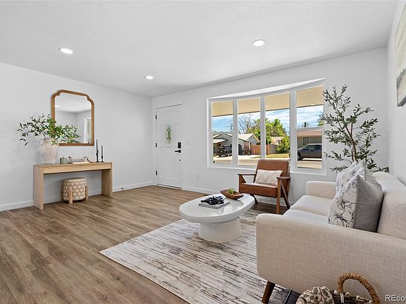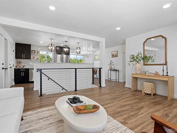 Newly remodeled one story home, with finished WALK OUT BASEMENT. This home feels very welcoming and bright. It features 4 bedrooms, bathrooms with an open concept floor plan. Beautiful finishes throughout including new kitchen with brand new stainless steel appliances, new quartz countertops, and new cabinets. New flooring, new paint and texture, and a primary bedroom with its own primary bath on the main floor. All bathrooms in this home have been fully remodeled from top to bottom with unique and tasteful finished accents. The full finished walk out basement includes a family room with an electric fire place, two additional bedrooms, a wet bar and a full bathroom. New deck with plenty of room to have your picnic or barbecue table, launched chairs to enjoy the beautiful Colorado sunsets. Large backyard and fully replaced sewer line. NEW HVAC and new electric panel. Schedule your showing today!